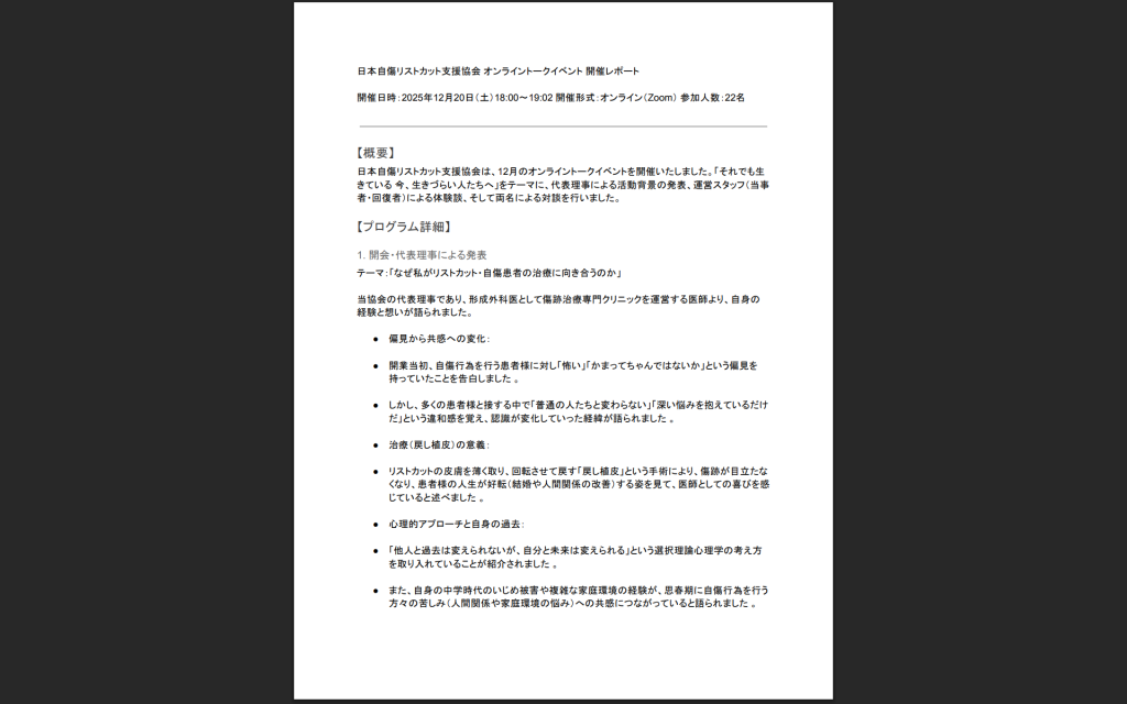 2026年1月14日 / 最終更新日時 : 2026年1月14日 jswsa-admin 12月トークイベントの議事録について先月のトークイベントでは22名の方がご参加くださいました!chat機能を利用して、ご質問もいただきました。議事録を下記に掲載いたします。ご参加くださった皆様ありがとうございました。